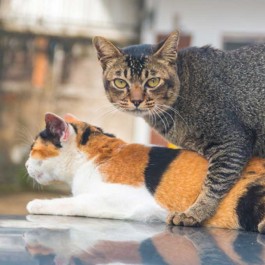 머리를 낮추고 등을 구부린 자세, 이것은 “당장이라도 공격할 수 있다구!”라는 임전의 사인입니다. 대부분의 고양이들은 불필요한 싸움을 줄이기 위해 먼저 서로를 위협적으로 바라보며 전투력을 감지하는 대치의 시간을 갖습니다. 그런데 이런 급박한 대치로도 승패가 나지 않을 때 싸움으로 발전하게 되는데요.