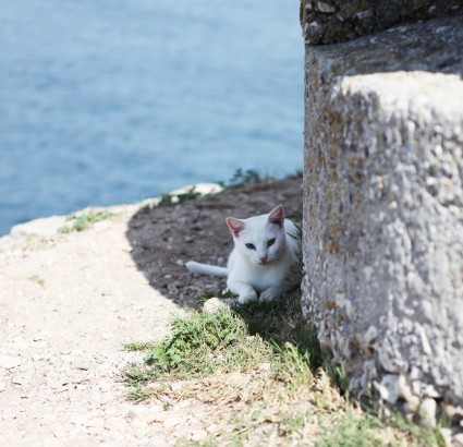 우뚝 솟은 마을 중심에 자리 잡고 있는 성 유페미아 성당 언덕 끝. 광활하고 푸르른 아드리아해와 어울리는 고양이가 오랜 돌담이 만들어준 그늘 아래서 고요히 앉았다. 휴식은 누구에게나 달다. 제목...