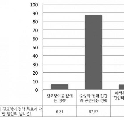 중성화 수술을 해서 개체수를 조절하고 밥 주는 주변을 청결히 한다면 서울시민 86% 이상이 길고양이에게 밥을 줘도 좋다고 생각하는 것으로 나타났다. 또 서울시 길고양이 정책은 중성화를 통한 공존에 둬야 한다는 의견이 전체의 ...