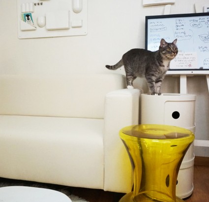 1. 칫솔꽂이엔 사람용과 고양이용 두 개의 칫솔이 꽂혀 있다.2. 치약이나 샴푸, 빗도 고양이 것과 사람 것 두 종류로 구비되어 있다. 3. 냉장고를 열어 보면 싱싱한 닭고기와 냉장보관을 요하는 고양이 건...